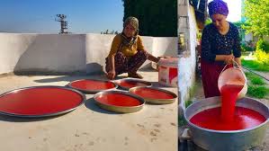 Kurutma: Püre, geniş tepsilere veya leğenlere yayılarak güneş altında kurumaya bırakılır. Bu aşama, Kilis’in sıcak yaz günlerinde birkaç gün sürebilir.